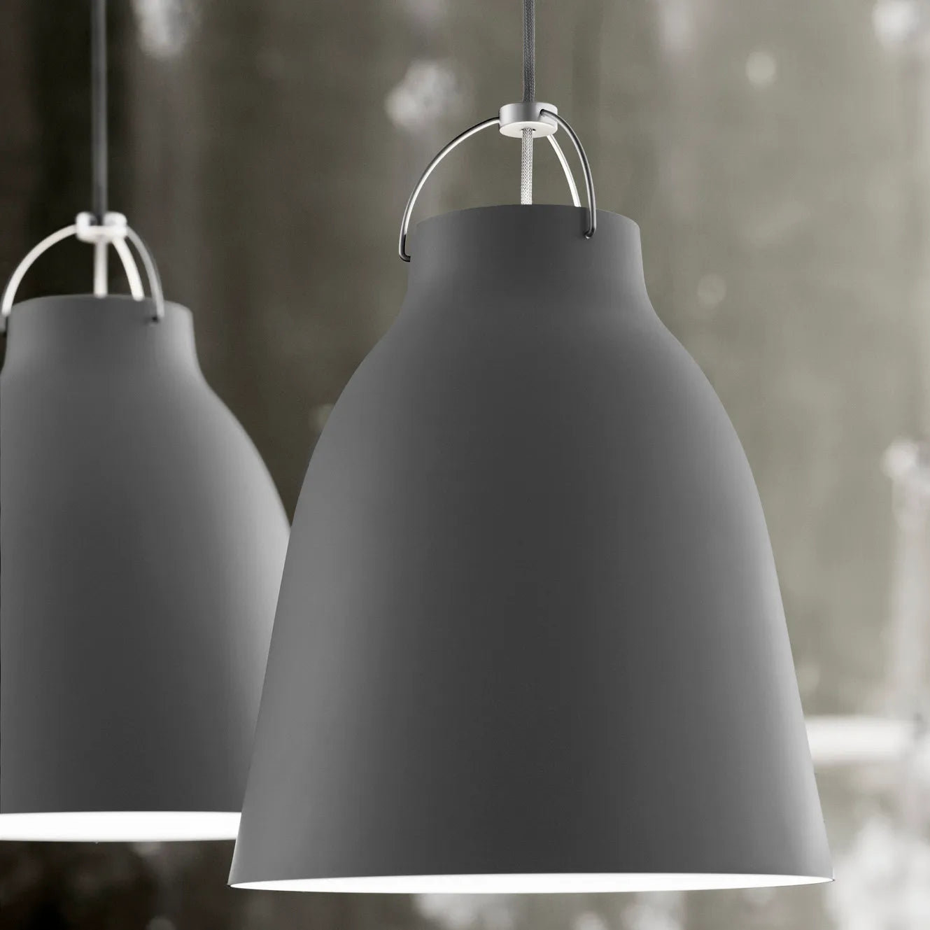 Caravaggio-pendlene har fått status som designikoner. Designet av Cecilie Manz, oppskalerer Caravaggio en tidløs silhuett med et friskt, moderne uttrykk. Serien er også kjent for sine innovative fargekombinasjoner mellom ledninger, skjerm og opphenging. Skjermens form skaper et nedovervendt lys som ikke blender, mens åpningen på toppen gir et lett lys oppover, noe som gir et elegant fokus på de fine detaljene øverst.