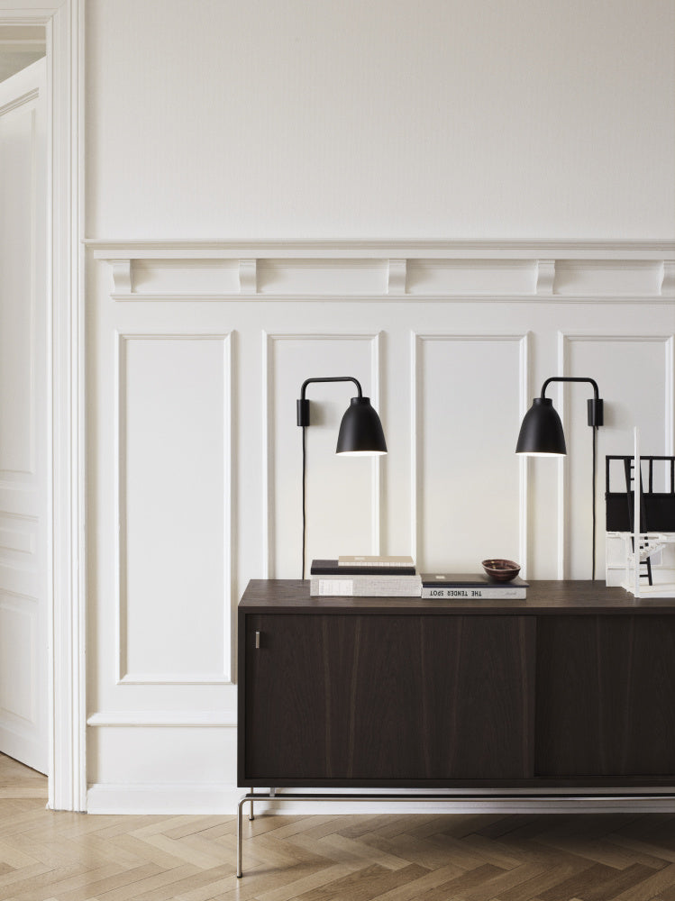 Caravaggio ™ har fått status som et designikon. Designet av Cecilie Manz, oppskalerer nyanser en tidløs silhuett med et friskt, moderne uttrykk. En roterende arm og fleksibel hals gjør dette designet justerbart for en rekke innstillinger og oppgaver.