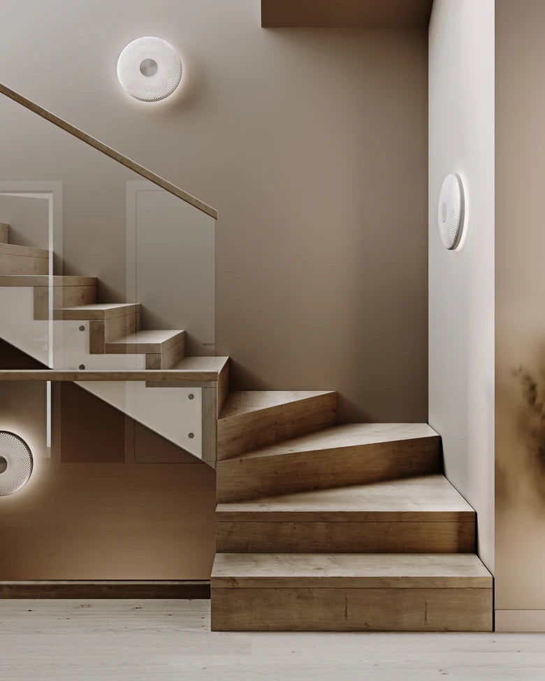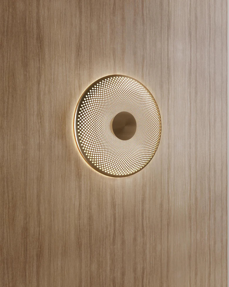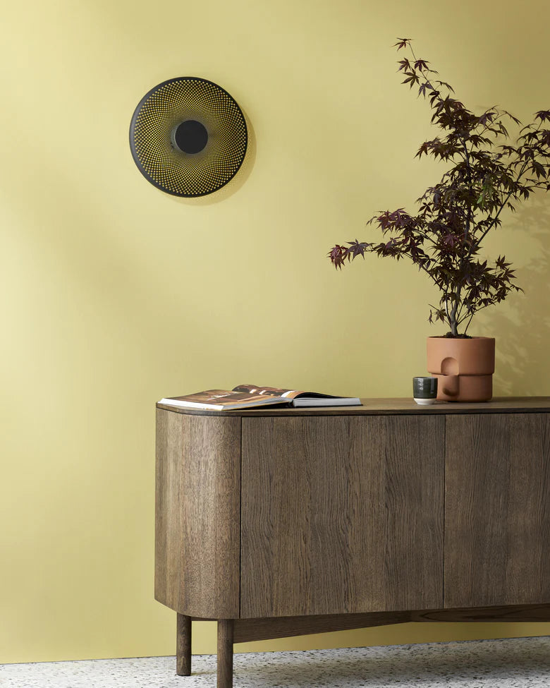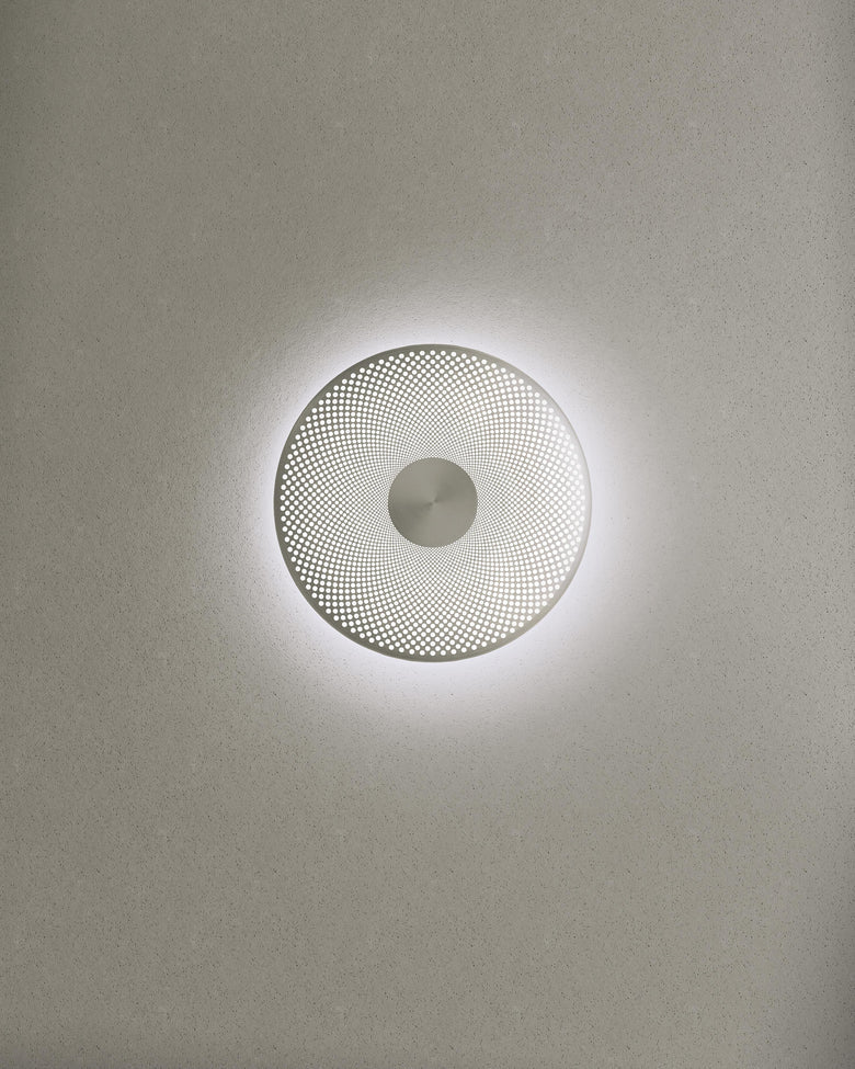 Glint er designet av den svenske designeren Feilix Isidorsson. Takket være et perforert mønster i den sirkulære metallskjermen, reflekterer Glint myke, blendefrie skygger opp og over rommet, lyser opp hjemmet ditt.