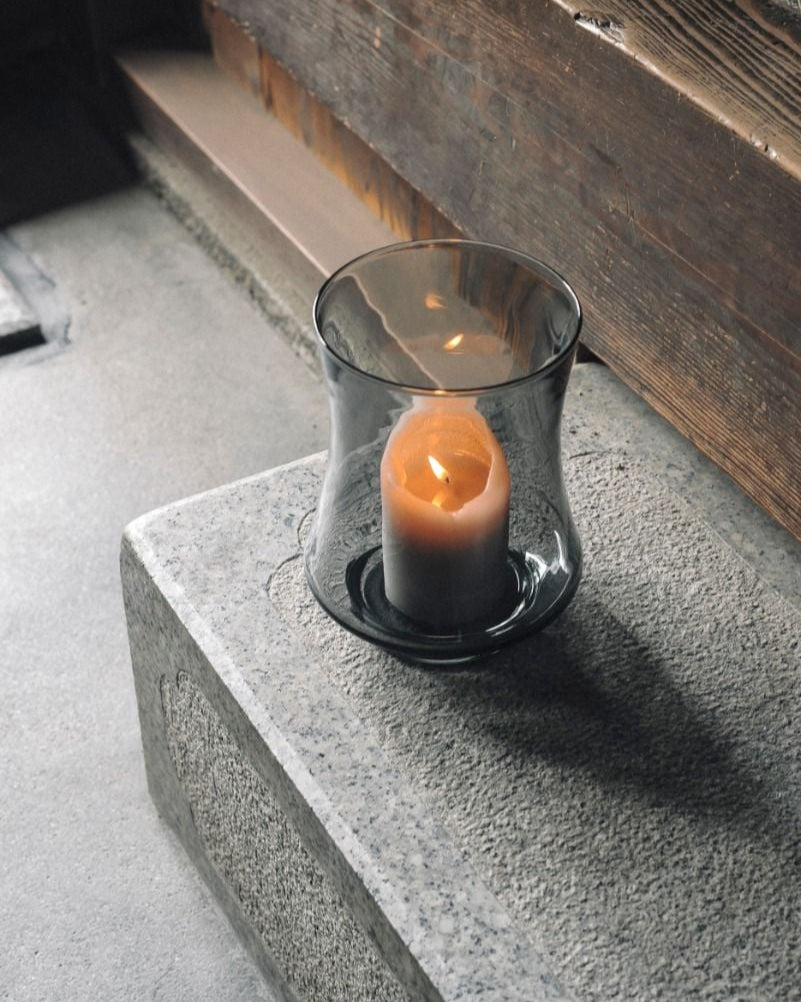 Den myke kurven i glasset gjenspeiler formen på en flamme og fremhever flammens bevegelser og evne til å skape ro.