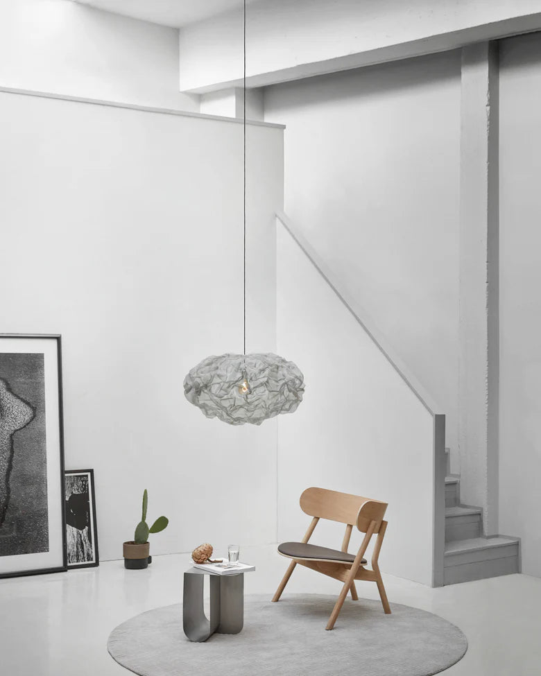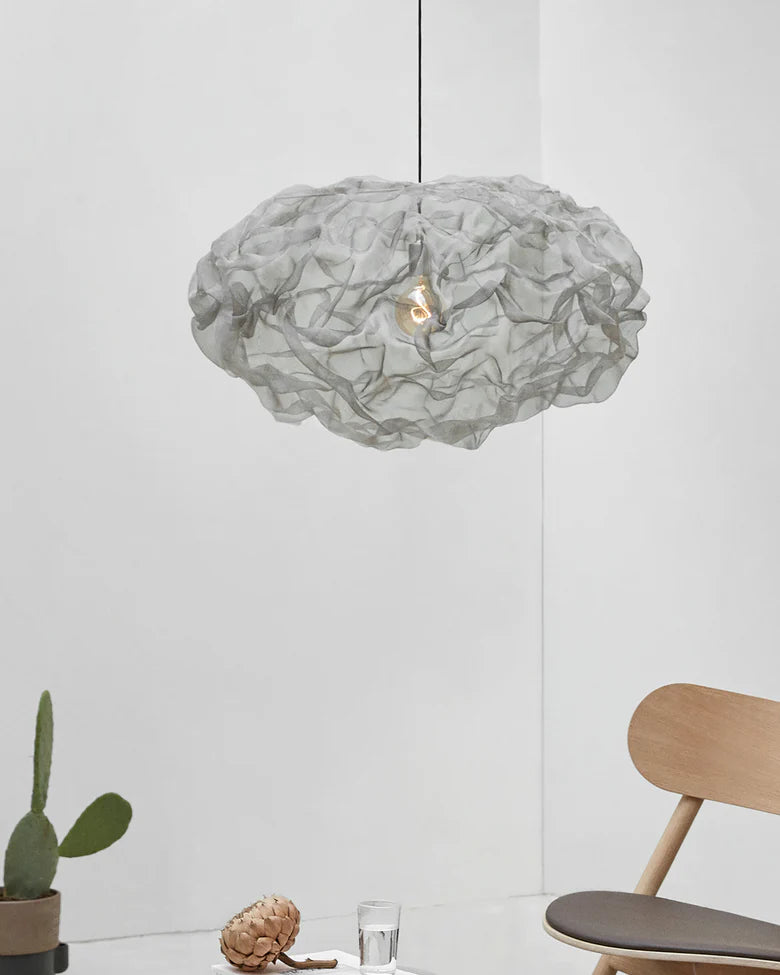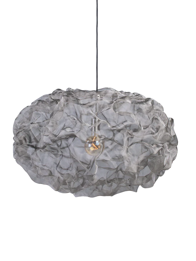 Taklampen Heat er designet av Johanna Forsberg for Northern i 2019. Metalnetting var utgangspunktet for denne taklampen, som designeren kunstnerisk forvandlet til en glødende sky. En iøynefallende taklampe uansett vinkel. Perfekt over spisebordet eller i en trappegang. Heat lages for hånd i Sverige og er en dynamisk lampe som fyller interiøret med kreativitet og fantasi.