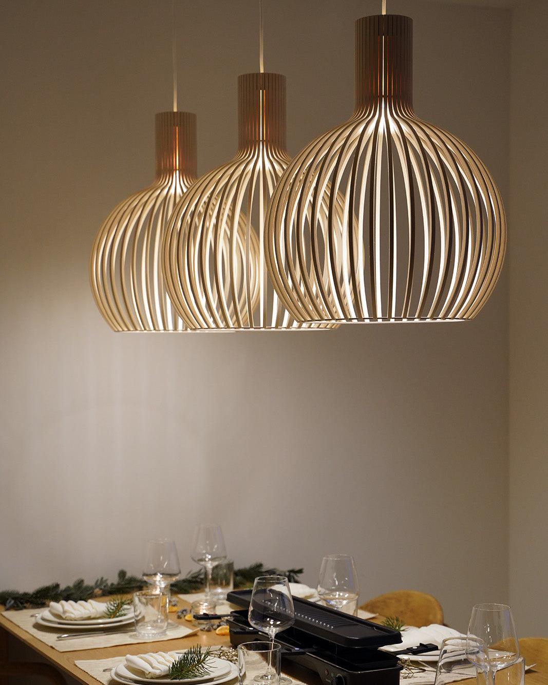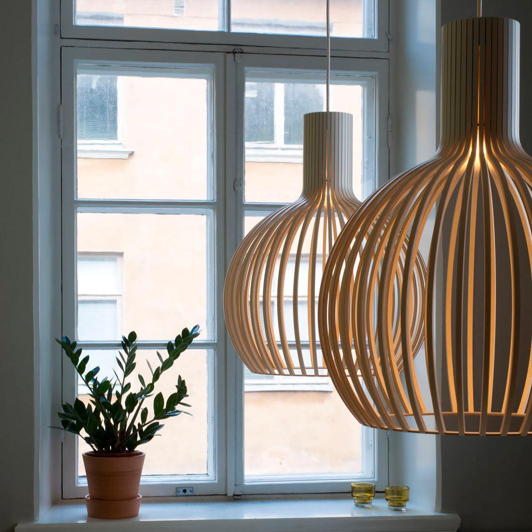 Octo 4241 er den høyt etterlengtede lillebroren til den vakre klassikeren Octo 4240. Denne nye taklampen er en mindre utgave av en av Sectos mest populære lamper, men beholder den samme tiltrekningen og lettheten som den berømte storebroren har. Lampen er håndlagd i formpresset bjørk av dyktige håndverkere i Finland.