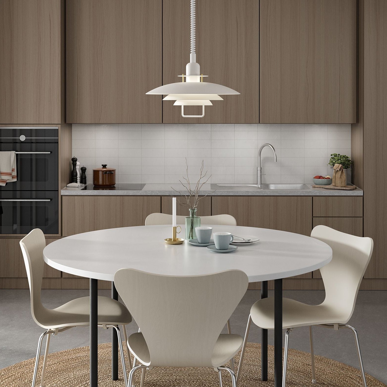 Primus er en populær kjøkkenlampe med tidløst design som har blitt tilpasset trender gjennom årene. Lampen har et metallhåndtak som gjør det enkelt å justere høyden over spisebordet. Pendelen finnes i flere størrelser, farger og overflater.