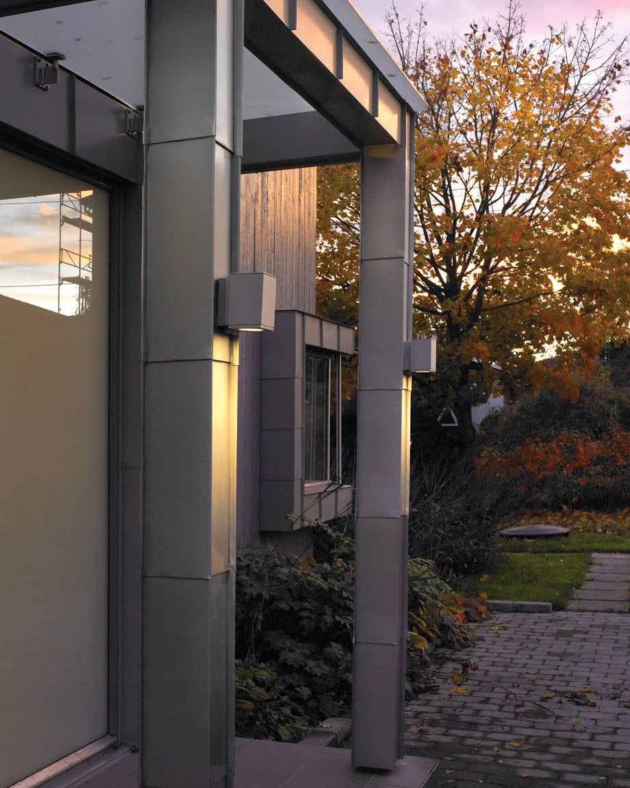 Moderne lampe i aluminiumstøp. Lyser opp og ned. Klart glass. Sandvik leveres i fargene aluminium, grafitt og hvit. LED lyskilder medfølger (varm hvit).