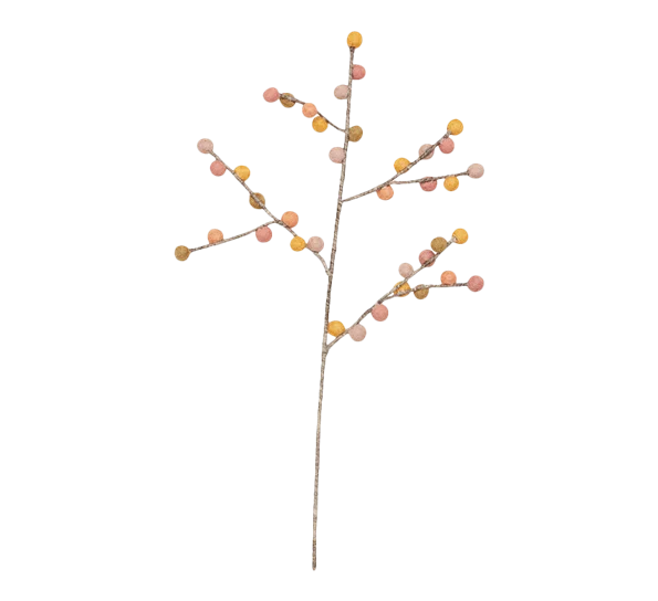 Flott dekorasjons kvist med gyldne ull bær fra norske UND. Kvisten er kjempe fin i en vase alene eller sammen med flere.