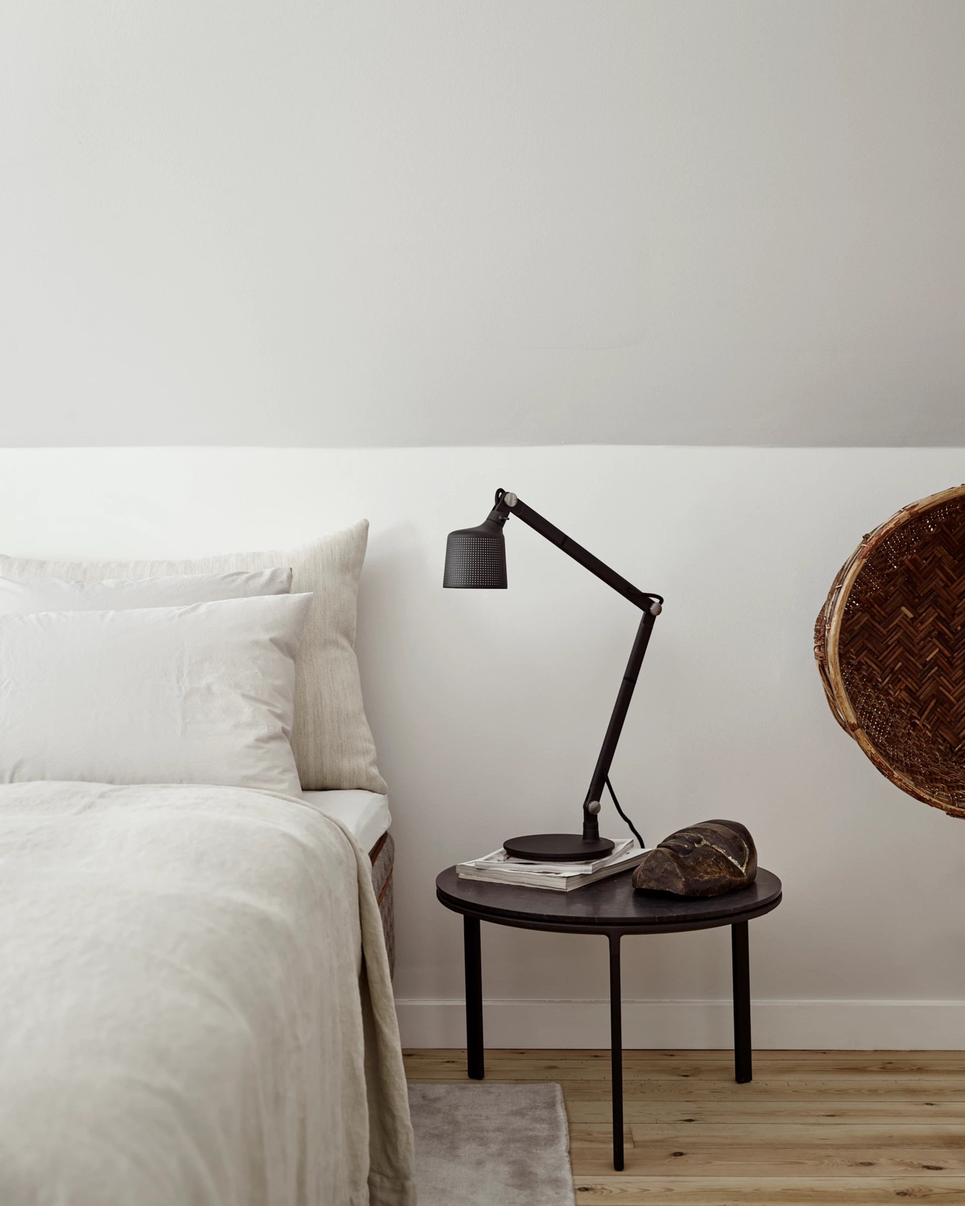 Materialer: Pulverlakkert stål og aluminium, rustfritt stål, silikon, glass, stoffbelagt ledning.